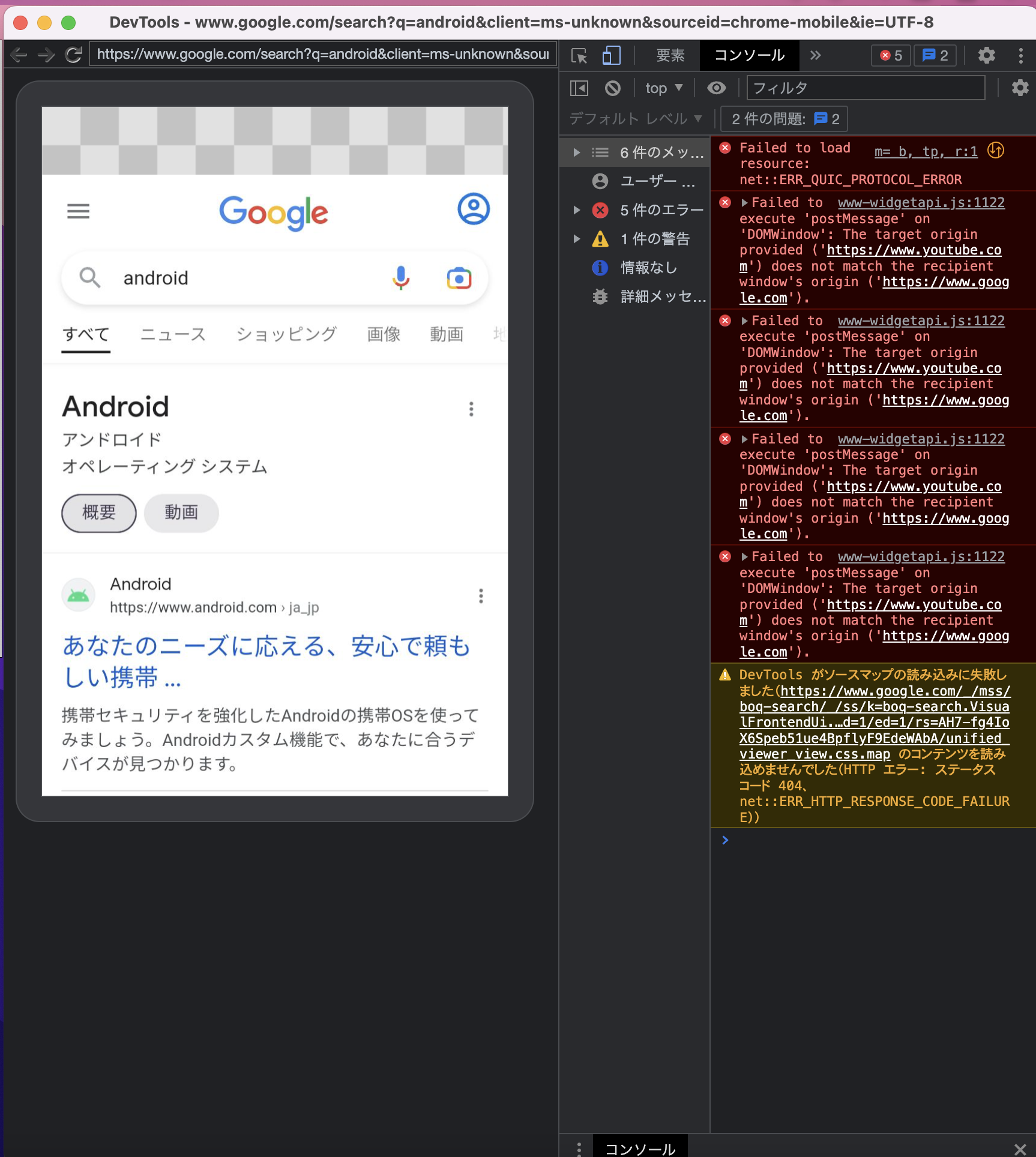 - 開発者ツール表示