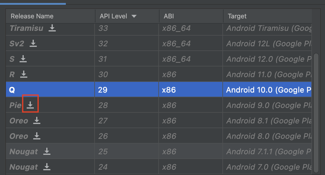 - Android StudioでデバッグしたいAndroidのバージョンをインストールしていること